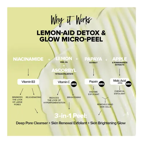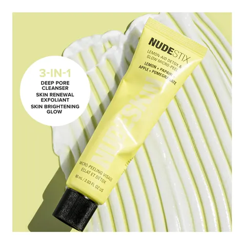 NUDESTIX NUDESKIN Lemon-Aid Detox & Glow Micro-Peel harnesses papain’s enzymatic peeling action and apple/pomegranate extracts for radiant skin detox. Clarify pores and renew cells for a healthier complexion.